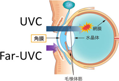 従来利用されてきた紫外線UVCは、生体に対する危険性が高いことから、無人環境での使用が前提でした。一方、Far-UVCは、人体に対する安全性が高く[2][3]、有人環境における利用についても実証が進められています。